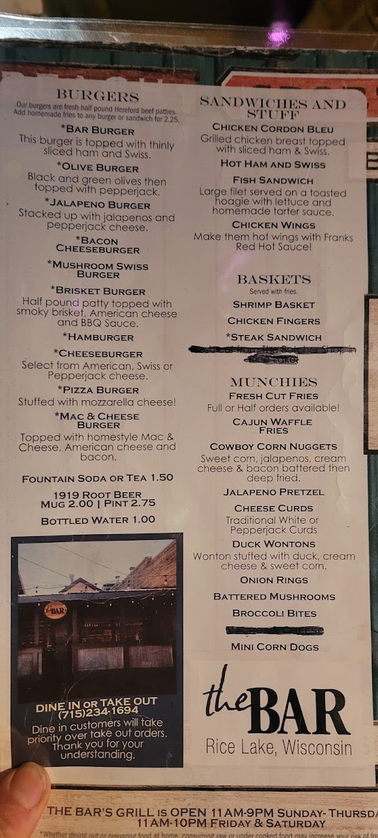 Welcome to The Bar Rice Lake, a hidden gem located at 9 W Marshall St, Rice Lake, WI. Renowned for serving some of the best burgers in town, this lively spot offers a vibrant atmosphere complemented by fantastic service.